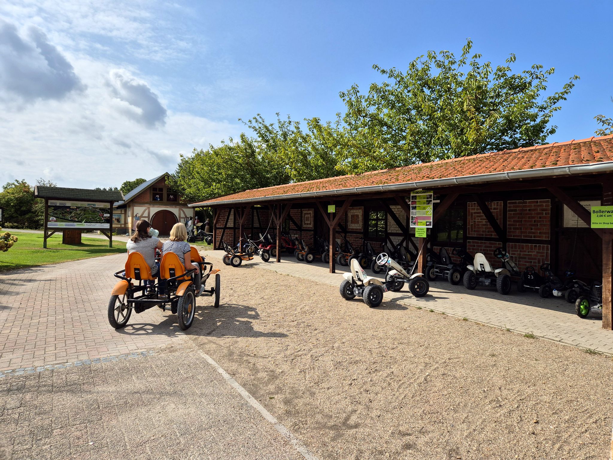 Fahren Sie mit unseren mietbaren Tret-Go-Karts auf dem großen Rundweg um den gesamten Park. Den genauen Weg sehen Sie auf dem Lageplan.