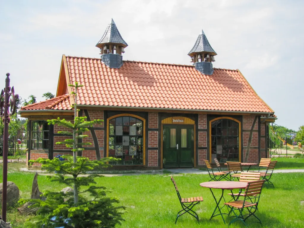 Das Bastelhaus befindet sich im Bühnenbereich und beherbergt bis zu 30 Personen. Wir stellen auf Wunsch Geschirr/Gläser zur Verfügung. Der schöne und helle Raum des Bastelhauses ist außerdem eine von mehreren Möglichkeiten in unserem Märchenpark Ihre Traum-Hochzeit zu feiern.