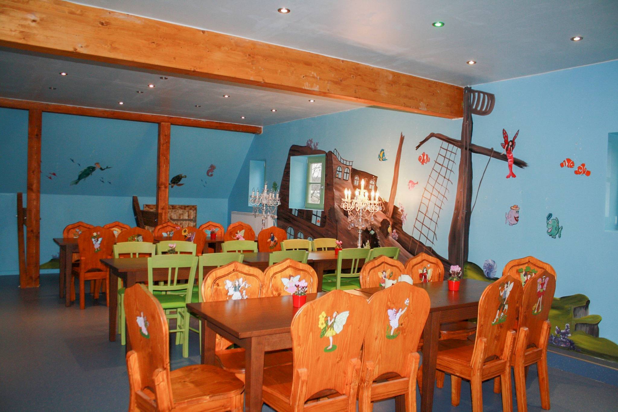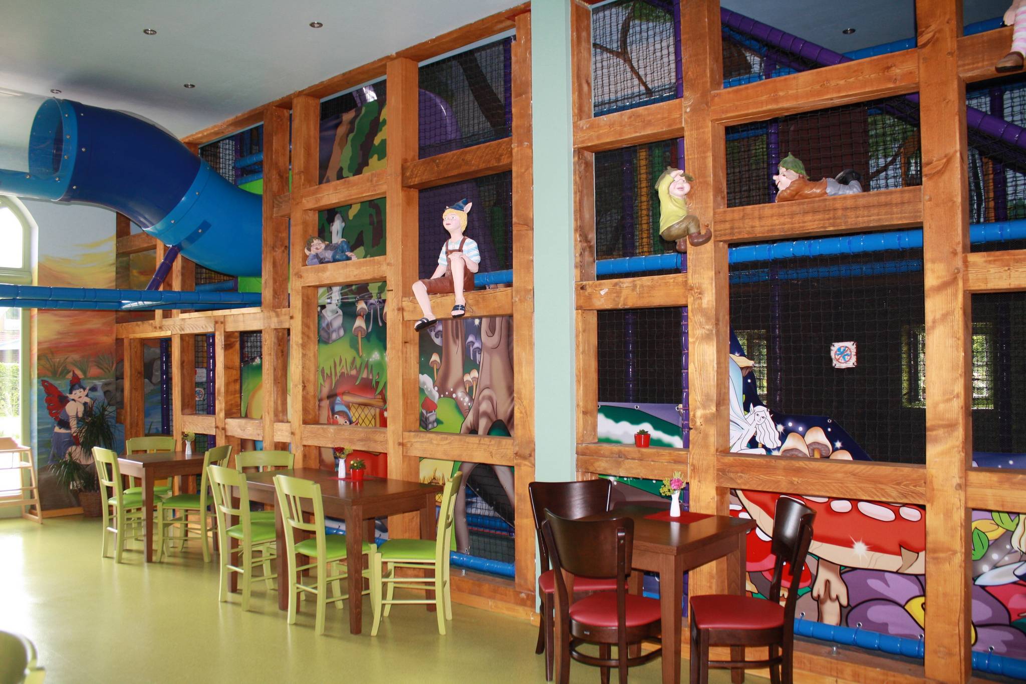 Gönnen Sie sich eine Pause vom Rutschen, Klettern, Hüpfen und Toben und genießen Sie das Angebot im Wichtelcafé in der Spielscheune!